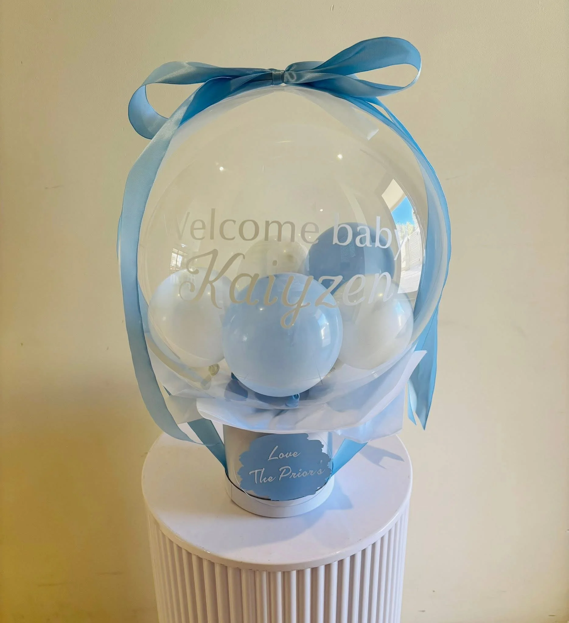 Choose between a clear glass bubble balloon with coloured smaller balloons inside or 1 coloured balloon (balloon colours of your choice, lots of options available.