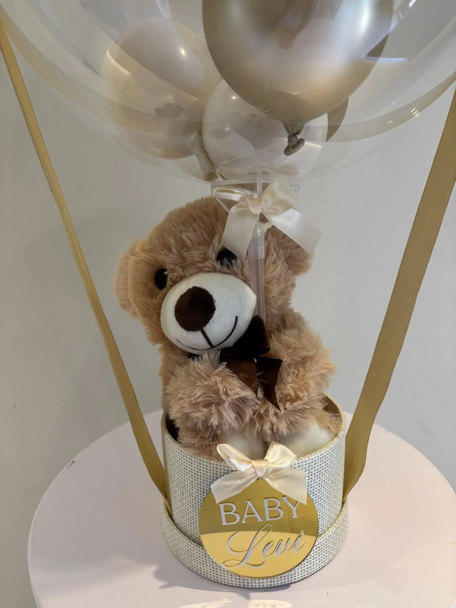 Our very popular Hot Air Balloon gift design is perfect for adding a soft plush gift for baby!